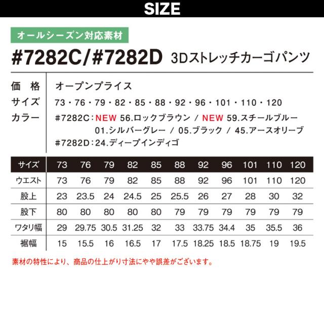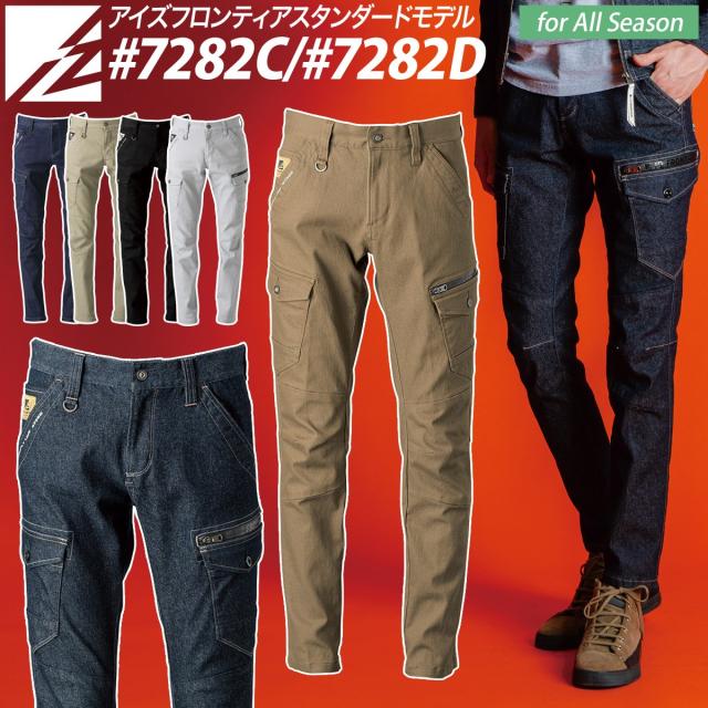 アイズフロンティア 3Dストレッチカーゴパンツ 7282C/D ツイル デニム 作業服 作業着 オールシーズン スタンダード かっこいい メンズ I’Z FRONTIER