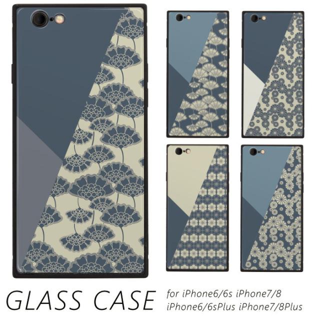iPhone SE3 ガラスカバー 菊 梅 斜めデザイン 和風 藍色 iPhone対応 ガラスケース スマホケース TPU iPhone Xperia