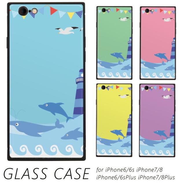 iPhone SE3 ケース スマホケース ガラスケース TPUガラスケース 全機種対応 TPU ガラスカバー クジラ イルカ 海 灯台 iPhone Xperia Galaxy