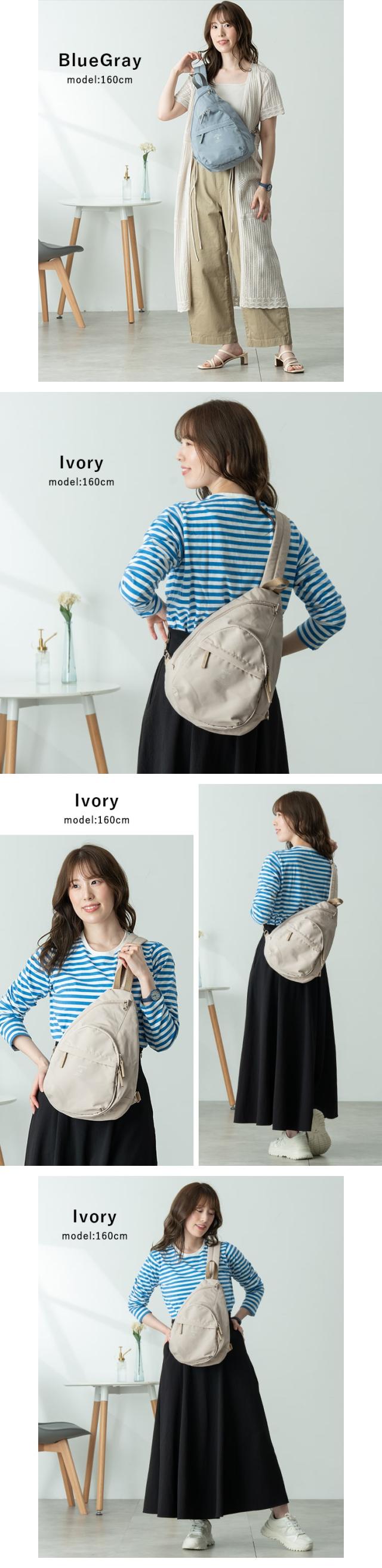 ボディバッグにありがちな野暮ったいイメージのない、女性らしいドロップ型が特徴です。
