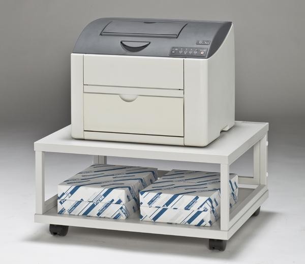 商品詳細:移動に便利なキャスター付のプリンタスタンドです。下段はプリンタ用紙のストック置きに便利。 製造国:日本 素材・材質:本体:スチール角パイプ粉体塗装天・棚板:スチール板 商品サイズ:外寸法:W600×D500×H300mm、有効内寸法:W552×D475×H192mm 仕様:A4レーザー対応耐荷重:総耐荷重60kg、各段40kg完成品