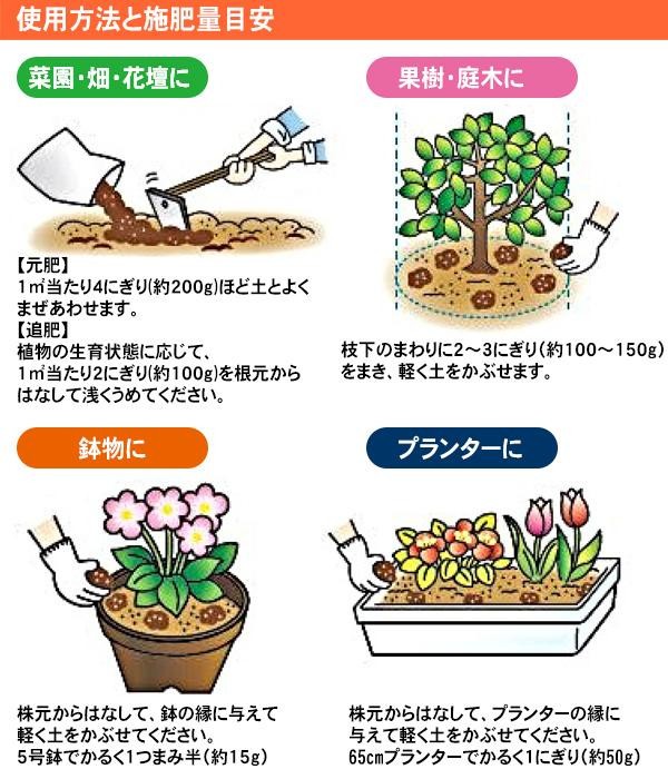| 成分 | 菜種油かす、魚粉、骨粉 ※N(チッ素):P(リン)・K(カリウム)/4:8.5:0.5 |
