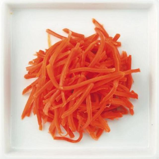 商品詳細:にんじんを細かく棒状にスライスし、香料とともにビネガーに漬けた、フルーティ&マイルドなサラダ。 生産国:ドイツ 賞味期間:1080日