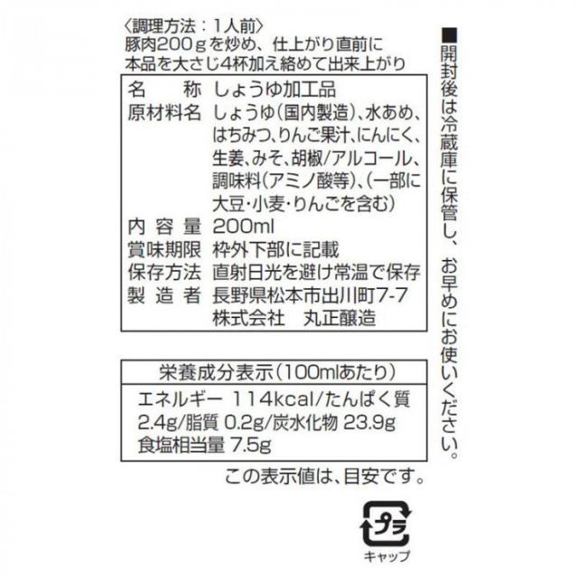 丸正醸造 本気のしょうが焼きのたれ 200ml×9瓶 |b03