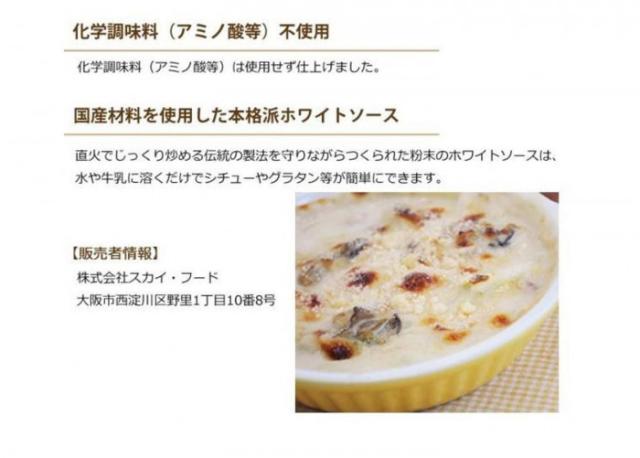 商品概要:厳選した国産材料を使用した本格派ホワイトソース。