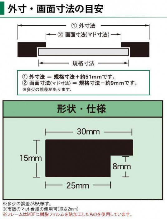 | 素材・材質 | フレーム:MDF樹脂フィルム貼加工 裏板:キャンバスボード 表面フィルム:PET |