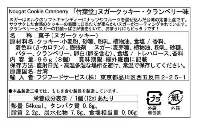 フジフードサービス 台湾 竹葉堂 ヌガークッキー クランベリー味96g(8個) 12袋 |b03