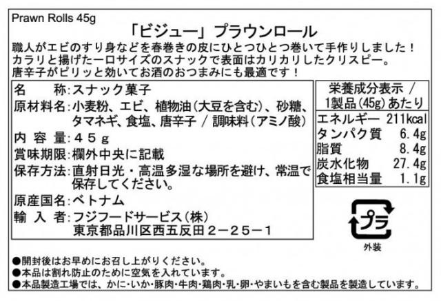 フジフードサービス ベトナム Bijou(ビジュー) エビ春巻きスナック プラウンロール エビ 45g 24袋 |b03