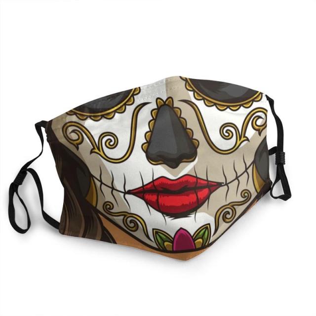 メキシコの死者の祭りのメイクをしたスカルレディのような不気味でユニークな変顔マスク。