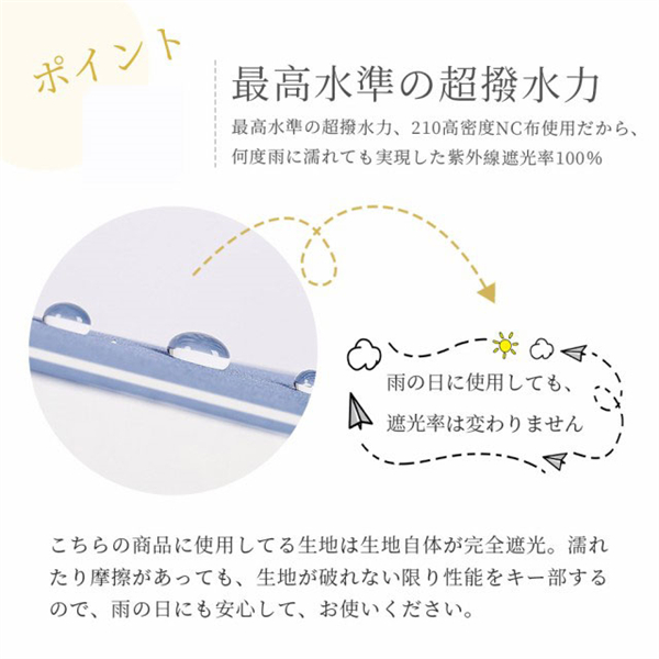 ・晴れた日の日差し対策用としてはもちろん、急な雨にも対応できます。
