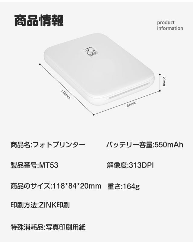 フォトプリンター スマホプリンター インク不要 ZINK ARフォト モバイルタイプ USB充電 手帳 オフィス 写真 メモ 領収書 ラベル ギフト 【PL保険加入済み製品・安心】