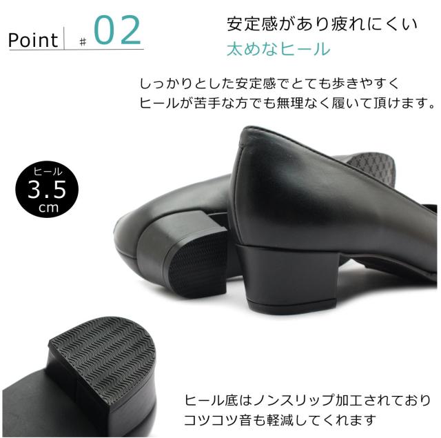 ハッシュパピー レディース スクエアトゥ パンプス L-7240T 7240 Hush puppies 本革 日本製 婦人靴 クロ ブラック