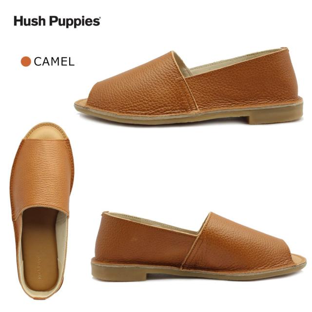 ハッシュパピー レディース フラットシューズ オープントゥ カジュアル サンダル L-R255T 日本製 Hush puppies r255t クロ キャメル シルバー