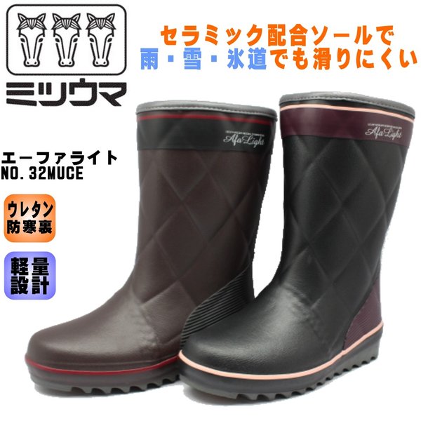 ミツウマ エーファライト 防寒 長靴 No.32MUCE 32 北海道 レインブーツ レディース ブラック ブラウン