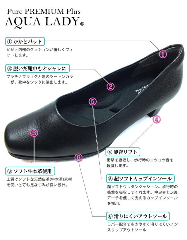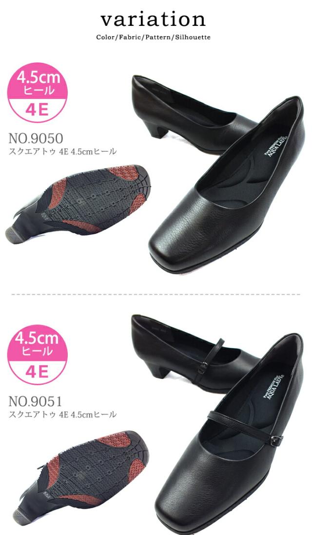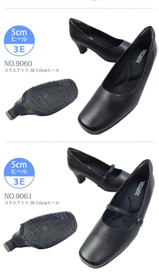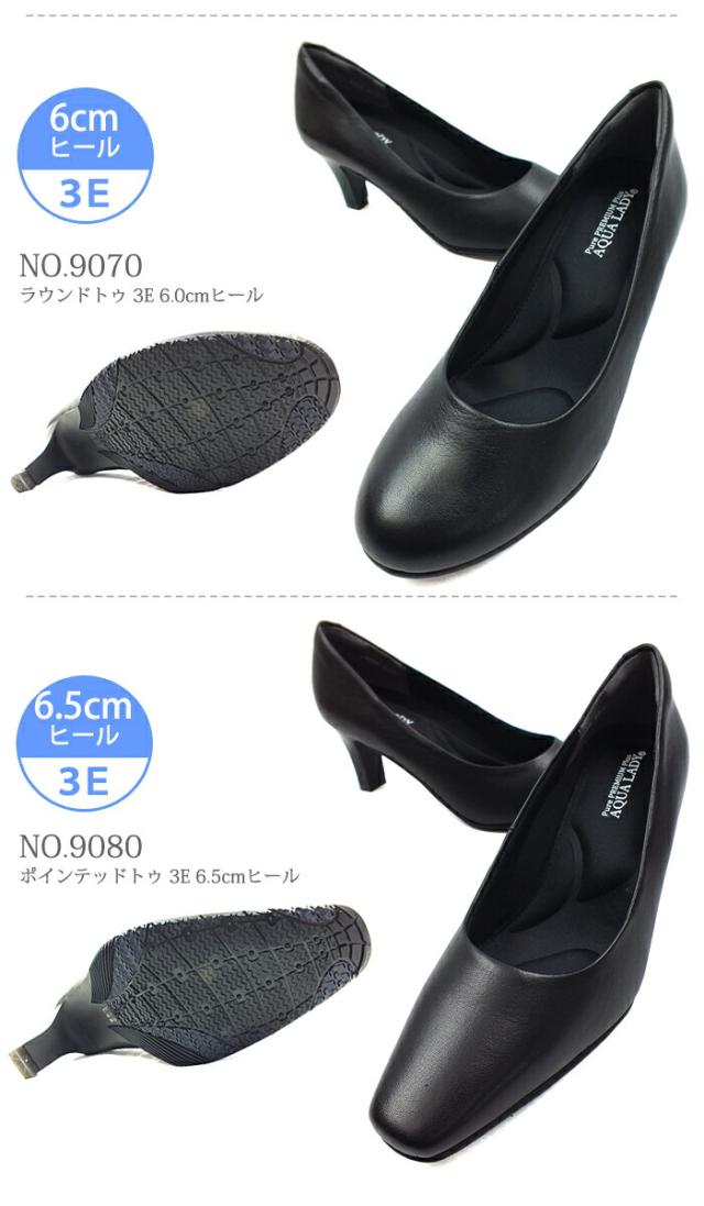 AQUA LADY アクアレディ 本革 パンプス ブラック 3E/4E幅広設計 9050/9051/9060/9061/9070/9080