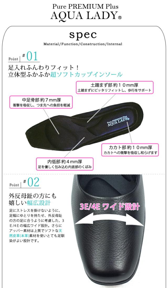 | AQUA LADY Pure PREMIUM Plus-アクアレディプレミアムプラス- ワンランク上の足元を演出する本革プレミアムパンプスです。3E/4E幅広設計で履き心地も抜群!!フォーマル 通勤 リクルート 卒業 卒園 冠婚葬祭 幅広いシーンに使える大人女子のマストアイテムになってくれると思います。 |