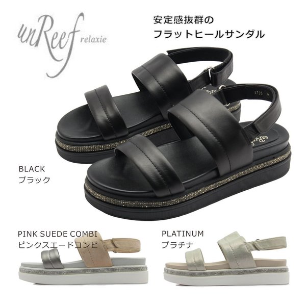 | unReef アンリーフ レディース サンダル バック ストラップ バンド フットベッド 3795 靴 ブラック ピンク プラチナ |