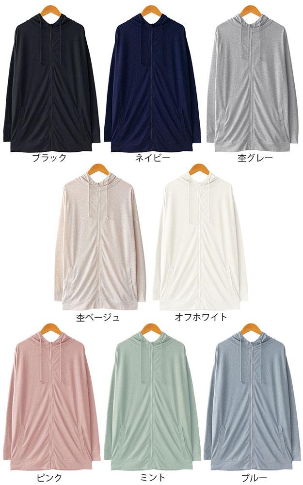 ■UV対策・夏にうれしい”サラッと薄手”素材のUVカットジップアップパーカー ☆ヒップがしっかり隠れるロング丈!売れ筋商品です!!■ 透け感のある薄手素材なので、蒸し暑い季節でも涼やかな着心地です。 やわらかなコットン混なので汗をかいてもサラッとやさしい肌あたりです。 紫外線を通しにくくする加工が施されているので、日焼け止めが面倒な時も着るだけでUV対策に。また、冷房が効いている室内の羽織りものとしても最適です♪ カラー展開が豊富で、いろいろなシーンでお使いいただけます。 |