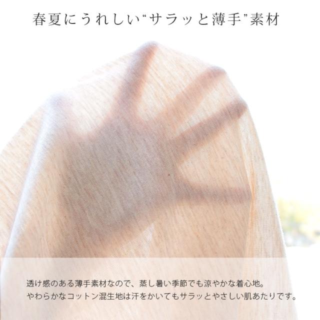 透け感のある薄手素材なので、蒸し暑い季節でも涼やかな着心地です。