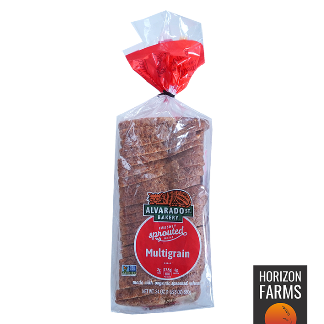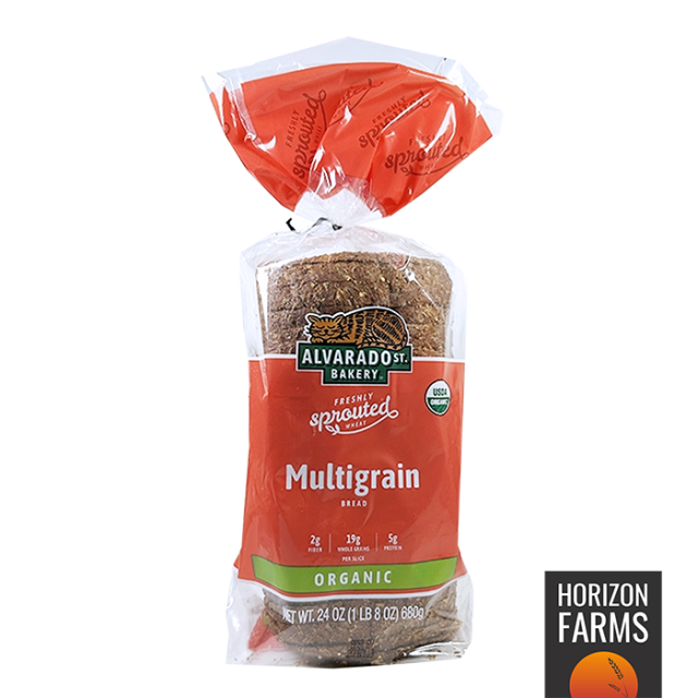 アメリカ・カリフォルニア産の発芽小麦を使ったマルチグレインブレッドの食パンです。有機JASのオーガニック認証を受けています。食パンは約1cm厚にスライスされており、総重量は680gございます。高品質のお肉やチーズ、バターなどと一緒にお召し上がりいただくのにぴったりの品質です。オーガニックな原材料をしており、非遺伝子組換えで、保存料不使用です。ライ麦、ひまわりの種、オーツ麦、アマニ種子(フラックスシード)等の美味しく健康的な穀物が入っていますので、風味と味わいが素晴らしく、特有の食感をお楽しみいただけます。こちらのパンはアメリカンスタイルの薄切りタイプで、日本の一般的な食パンより薄めとなっております。トーストしてお召し上がりいただいたり、サンドウィッチなどお使いいただくのもおすすめです。