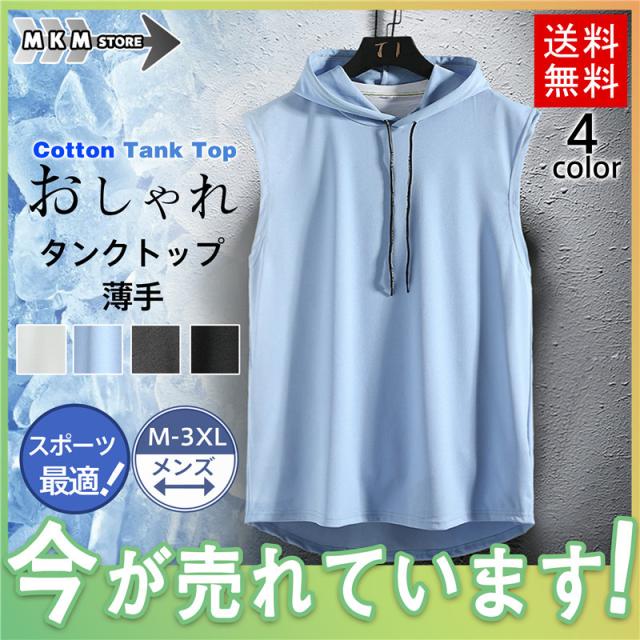 【水曜日まで!10%クーポン配布中】 タンクトップ メンズ tシャツ インナー ノースリーブパーカー フード カットソー カジュアル スポーツ トレーニング ジム ベスト アンダーウェア 薄手