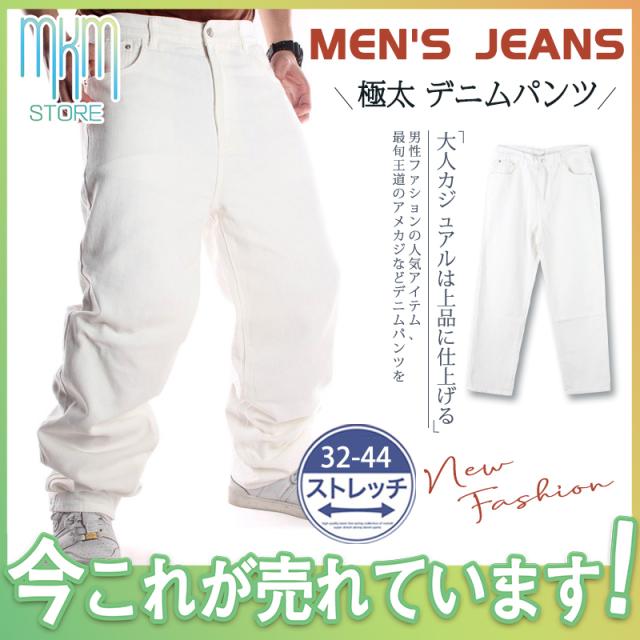 【水曜日まで!10%クーポン配布中】 極太 デニムパンツ メンズ ジーンズ 白 ルーズフィット ホワイト B系 ヒップホップ ワイド ストリート HIPHOP バギーパンツ 大きいサイズ