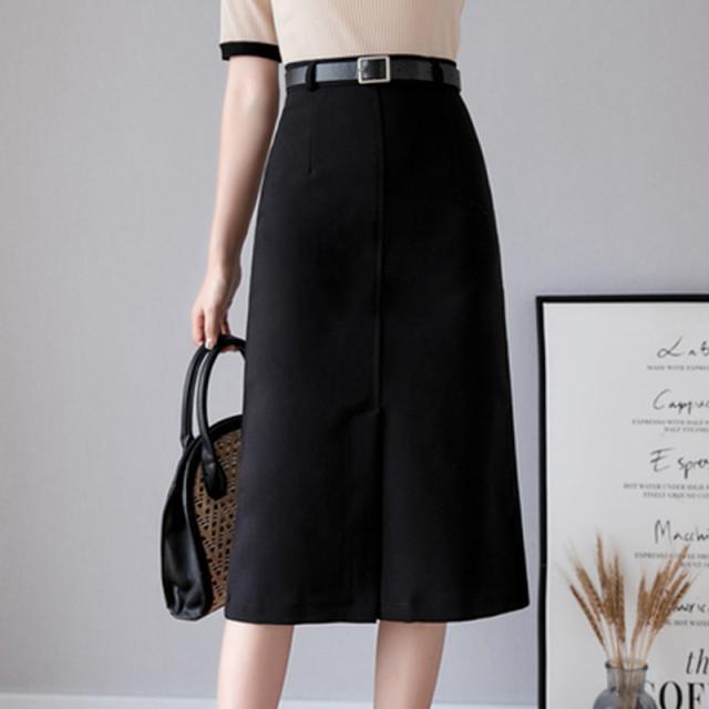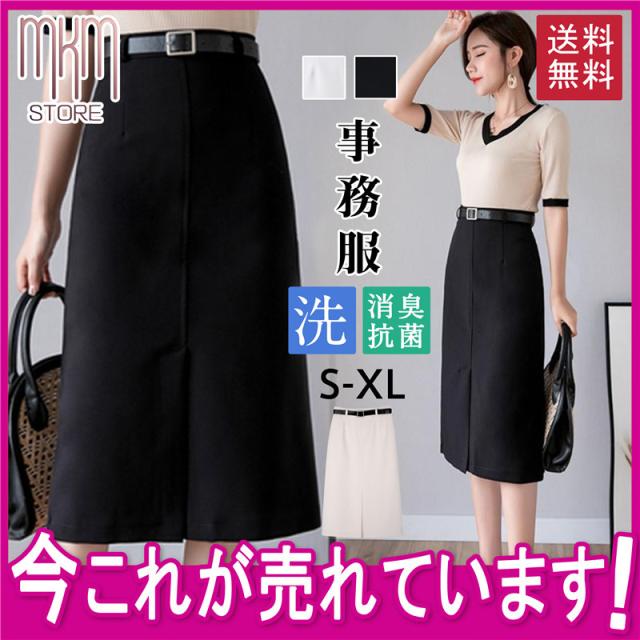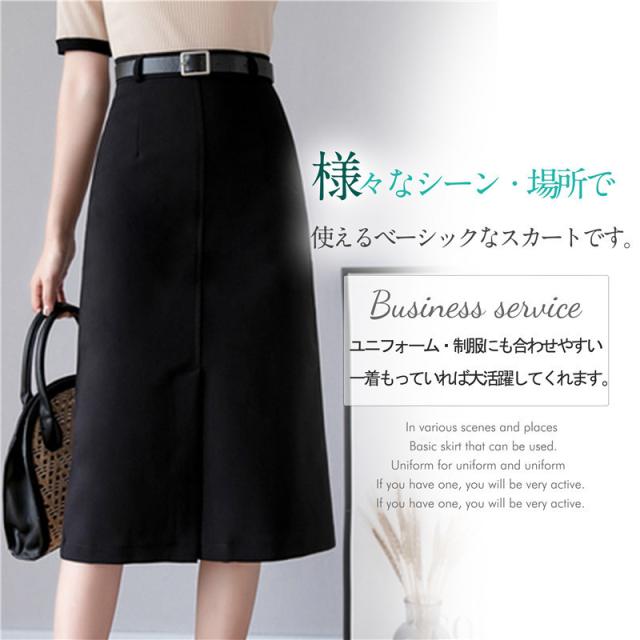【水曜日まで!10%クーポン配布中】 事務服 スカート 制服 洗える Aライン スリット ハイウエスト レディース 膝丈 大きいサイズ オフィス ビジネス OL 企業 ユニフォーム 着痩せ