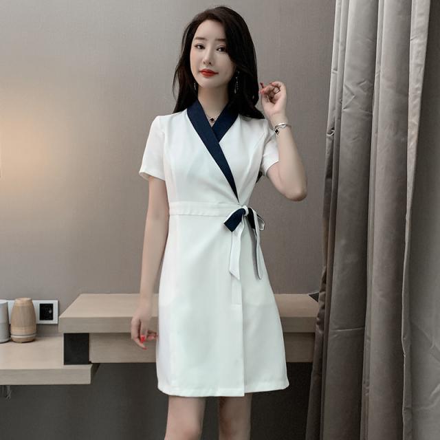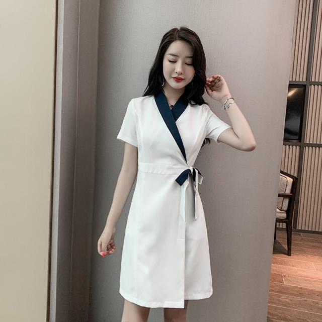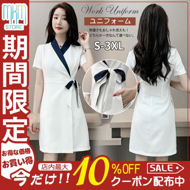 【水曜日まで!10%クーポン配布中】 エステ ユニフォーム サロン 通勤 レディース 女性 制服 おしゃれ 半袖 ワンピース ネイル 美容 歯科衛生士 医療系 歯科 クリニック Vネック