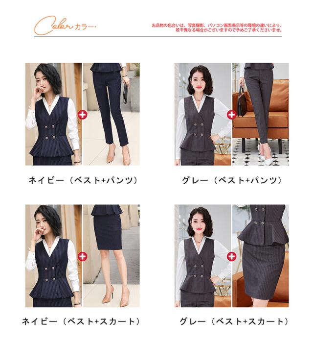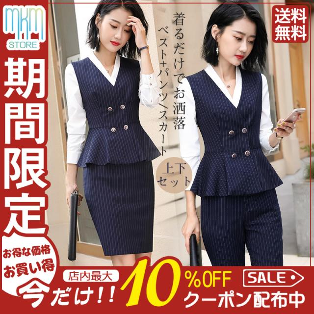 【水曜日まで!10%クーポン配布中】 事務服 ベストスーツ パンツスーツ 上下セット ベスト スカートスーツ 秋 春 フォーマル 制服 オフィス ビジネス 通勤 テーパードパンツ 就活