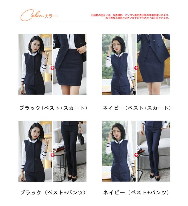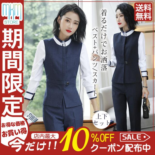 【水曜日まで!10%クーポン配布中】 事務服 ベストスーツ パンツスーツ 上下セット ベスト スカートスーツ 秋 春 フォーマル 制服 オフィス ビジネス 通勤 テーパードパンツ 就活