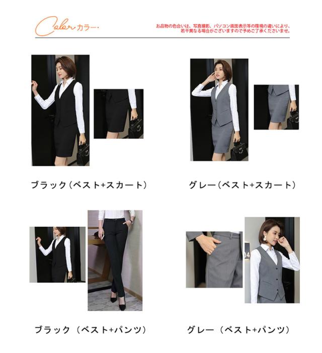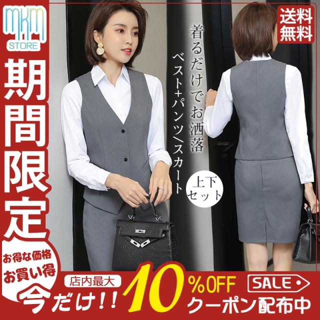 【水曜日まで!10%クーポン配布中】 事務服 ベストスーツ パンツスーツ 上下セット ベスト スカートスーツ 秋 春 フォーマル 制服 オフィス ビジネス 通勤 テーパードパンツ 就活