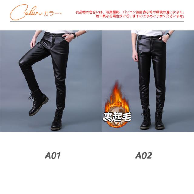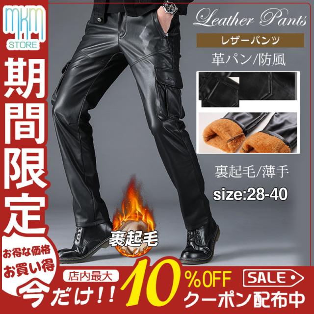 【水曜日まで!10%クーポン配布中】 レザーパンツ メンズ 革パン PU レザー バイクパンツ ロングパンツ 秋冬 春 細身 スキニー ストレッチ ライダース 防風 カジュアル お兄系