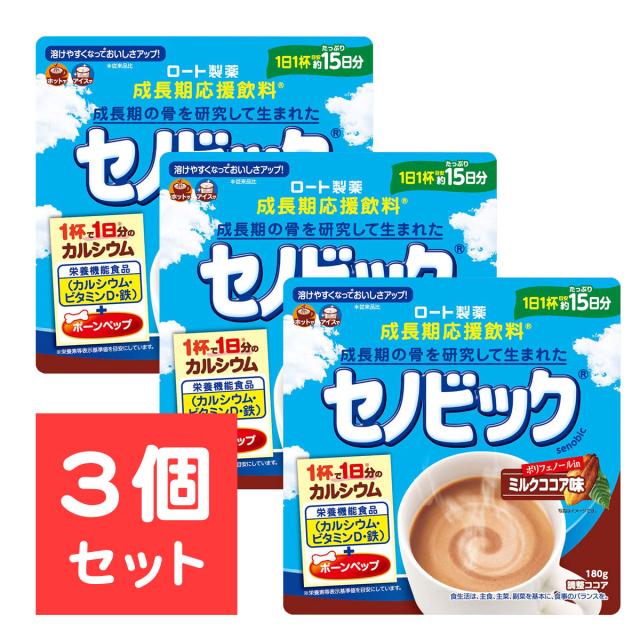 3個セット セノビック ミルク ココア味 成長期応援飲料 ジュニア プロテイン 子供 キッズ カルシウム 粉末 大容量 180g ロート製薬