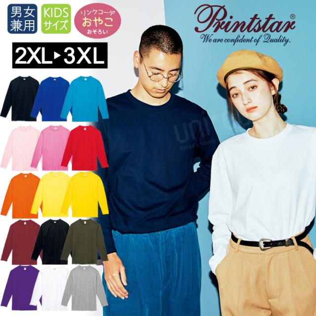大きいサイズ ラージサイズ プリントスター 長袖 Tシャツ ヘビーウェイト 5.6オンス 00102 CVL Printstar コットン お揃い 男女兼用 カラバリ ユニフォーム