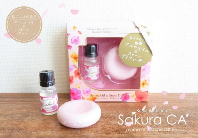 アロマ サクラCA アロマオイル&アロマストーン セット 石膏 木 フレグランス 寝室 書斎 玄関 トイレ ギフト 桜 贈り物 インテリア