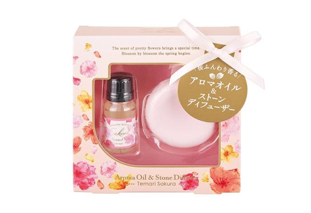 まるでさくら餅のようなコロンとかわいいストーンディフューザーと桜のアロマオイルのセットが登場。