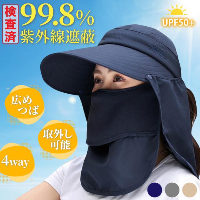 帽子 レディース 日除け uvカット 日焼け防止 マスク 首の日焼け防止 フェイスマスク つば広帽子 紫外線対策 遮光 春夏 BO-03