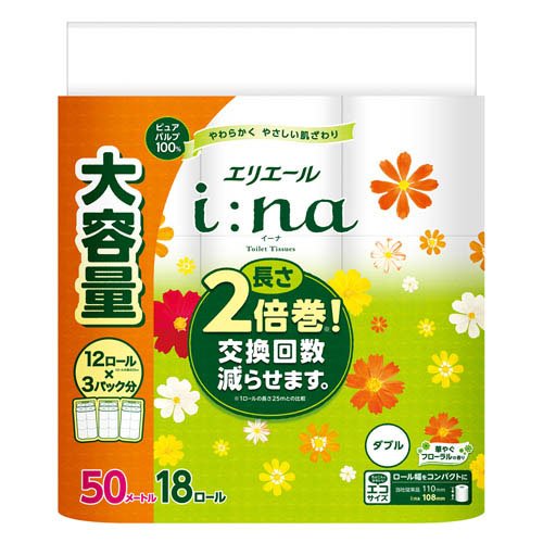 エリエール i:na(イーナ) トイレットティシュー 2倍巻き ダブル(18ロール入)[トイレットペーパー ダブル]
