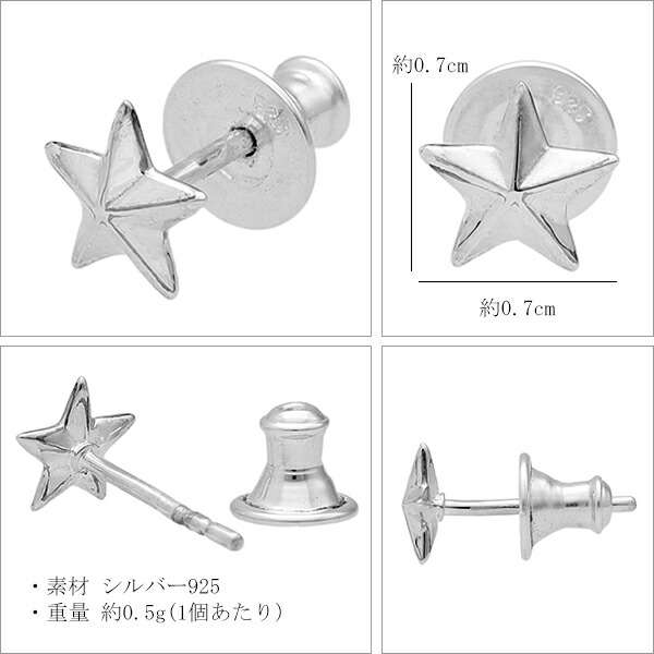 7mmのシルバー925製のシンプルなスターマークが目を引くアイテムで、ファッションにアクセントを加えることができます。