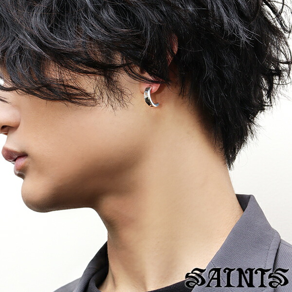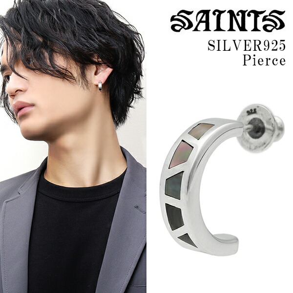 SAINTS セインツ ブラックシェル ピアス 1P 片耳用 メンズ シルバーピアス 黒蝶貝 貝 シェル フープピアス シルバー925 シルバー ブランド