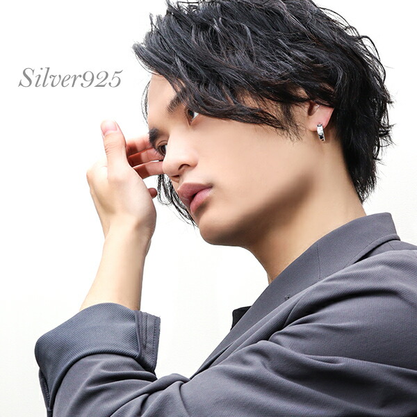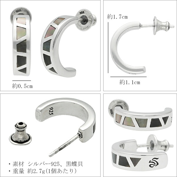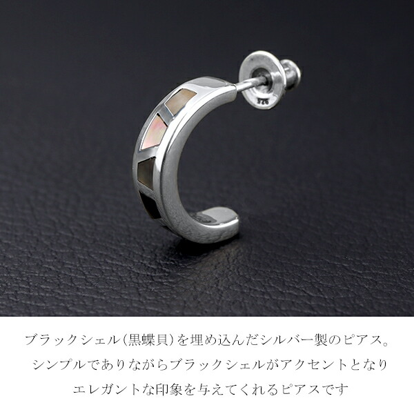 シルバーアクセサリー メンズアクセサリー スターリングシルバー シルバーピアス メンズピアス ハーフフープ フープピアス 定番 シンプル ブラックシェル 黒蝶貝 貝 シェル