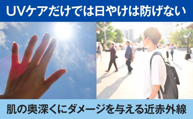 近赤外線は肌の奥深くまで届きダメージを与えると言われています。日やけ対策には紫外線(UV)だけでなく、近赤外線(IR)への対策も必要です。