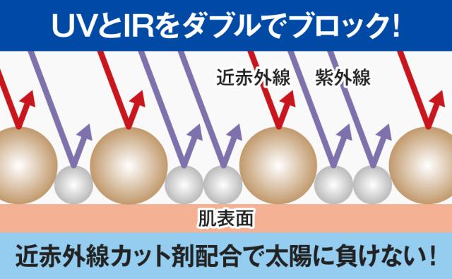 「SPF50/PA++++」という紫外線防御効果に加えて、近赤外線カット剤(酸化チタン)配合で、近赤外線もしっかりブロック。UVとIRのダブルブロックしながら、潤い成分で肌をしっかり保湿します。