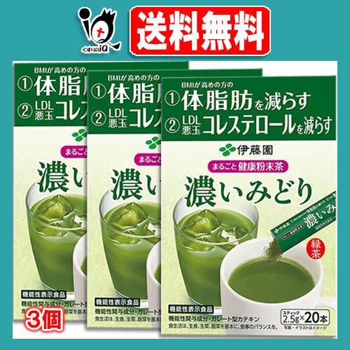 【機能性表示食品】まるごと健康粉末茶 濃いみどり 20本入×3個セット【伊藤園】体脂肪を減らす LDLコレステロールを減らす ガレート型カテキン394mg配合 緑茶 日本茶 粉末緑茶 インスタント緑茶 濃い茶