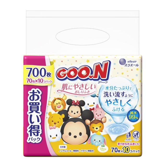 大王製紙 グーン 肌にやさしいおしりふき 詰め替え 70枚x10コパック【4個セット】
