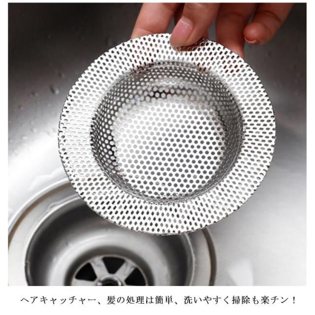 | 排水口から綺麗なシンクへ細かな目が小さなゴミもキャッチ! 丸型ステンレスなので洗いやすく掃除も楽チンです。 ステンレスを採用し、丈夫で錆びにくく長持ちです。 シンプルなステンレス製器具が、台所のシンク排水口を清潔に保ちます! ヘアキャッチャー、髪の処理は簡単、洗いやすく掃除も楽チン! | |