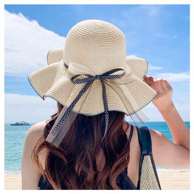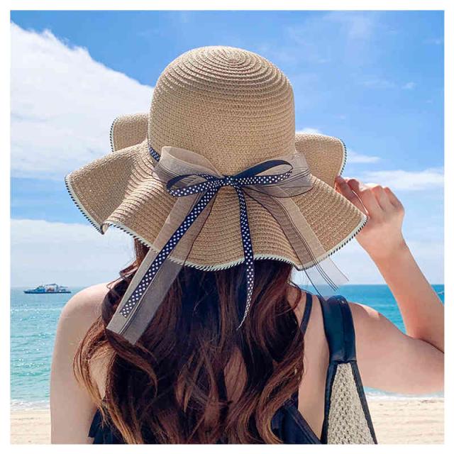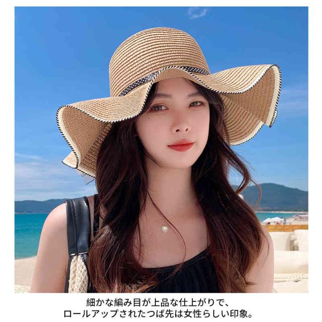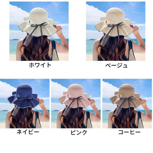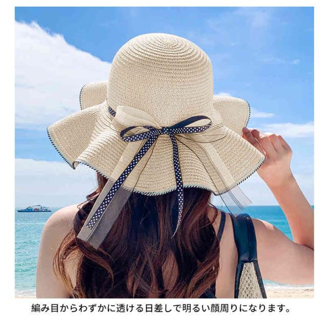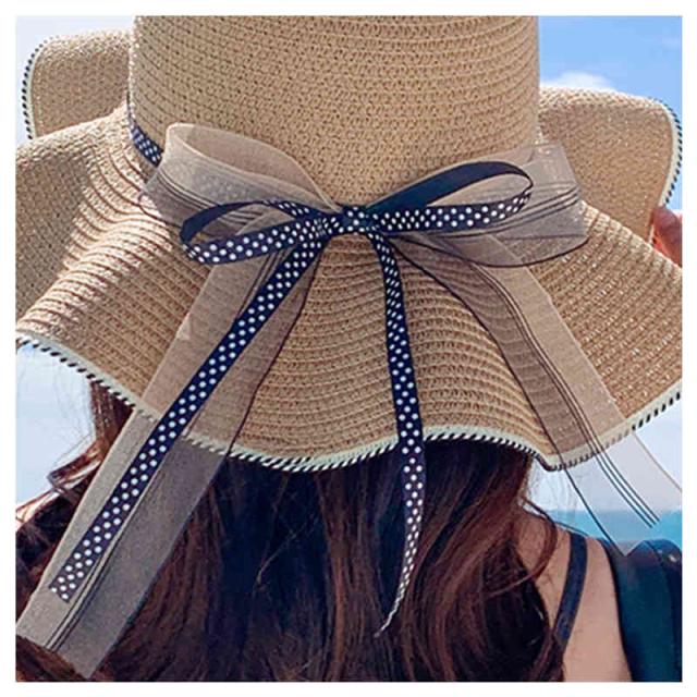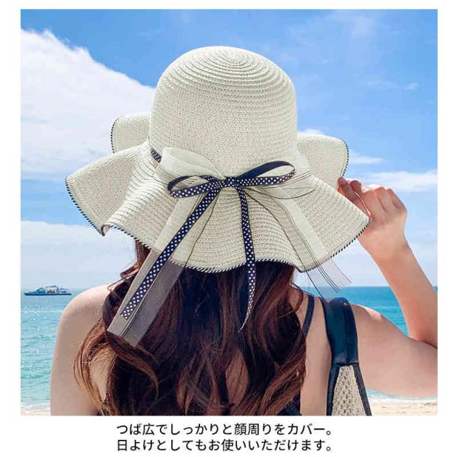 ストローハット 日よけ帽子 つば広ハット 麦わら帽子 レディース ペーパーハット UVカット uv対策 首ひも 女の子 リボン 夏 帽子 おしゃれ 紫外線対策 通気性 リゾート 旅行 アウトドア レジャー BBQ 夏 春 日焼け防止