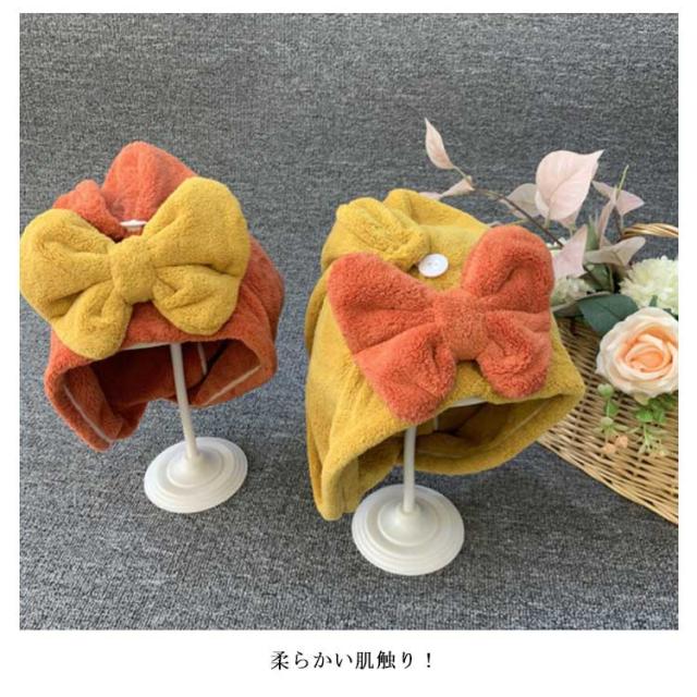 二枚組 ヘアキャップ タオルキャップ 吸水力抜群 マイクロファイバー 吸水 速乾 ヘアードライ 吸水タオルストライプ リボン 可愛い おしゃれ かわいい オシャレ