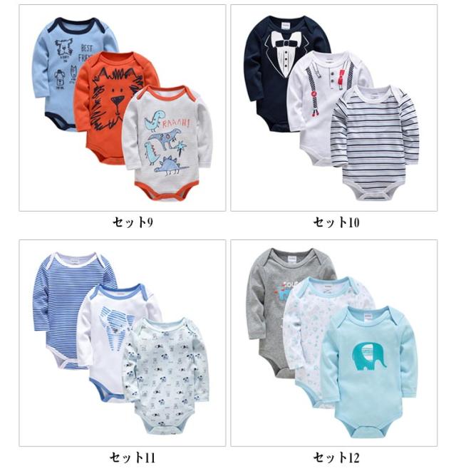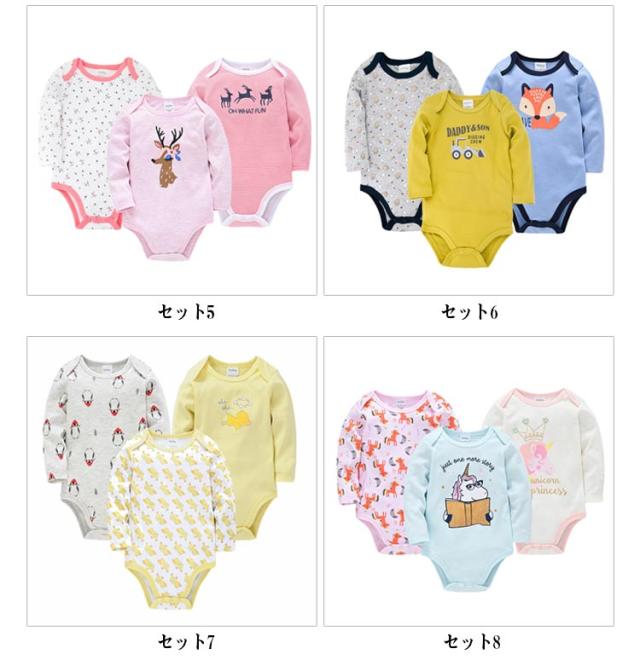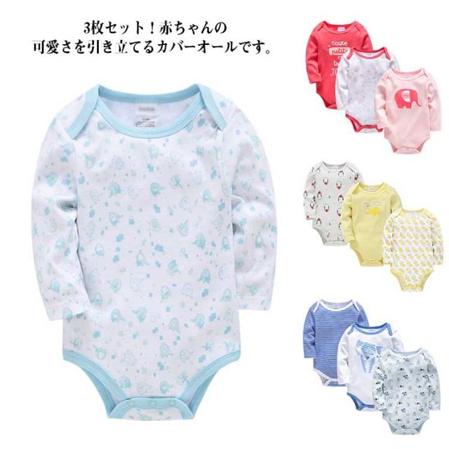 ベビー服 カバーオール 長袖 3枚セット ロンパース パジャマ ルームウェア 新生児服 赤ちゃん 可愛い 前開き 出産祝い 春物 通気性 送料無料
