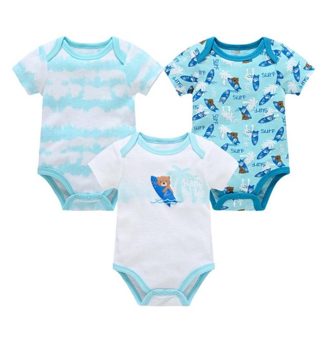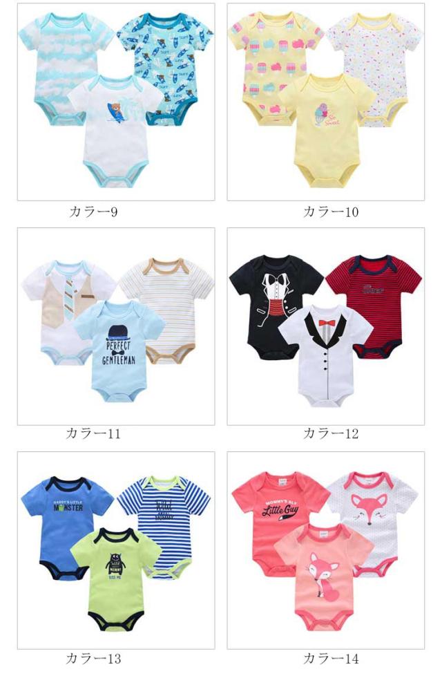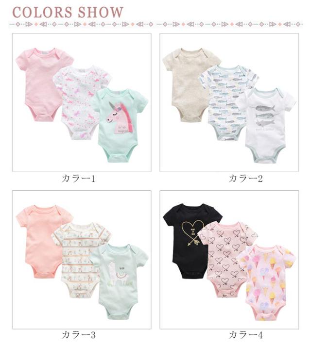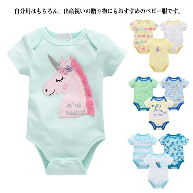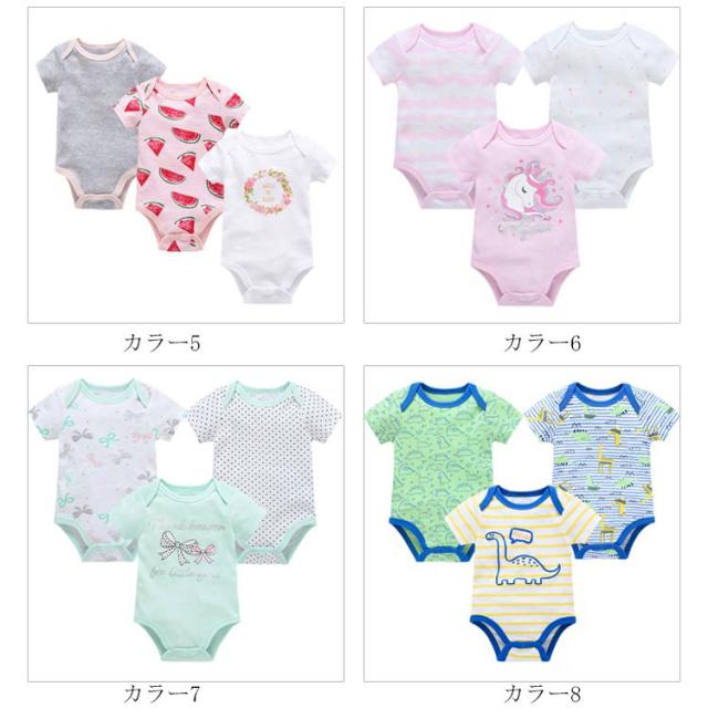 ベビー服 カバーオール 半袖 3枚セット ロンパース パジャマ ルームウェア 新生児服 赤ちゃん 可愛い 前開き 出産祝い 夏物 通気性 プリント 送料無料